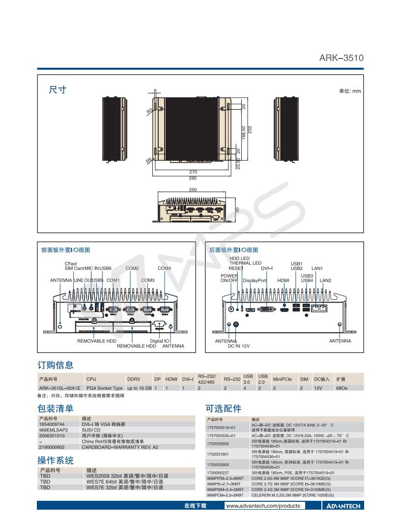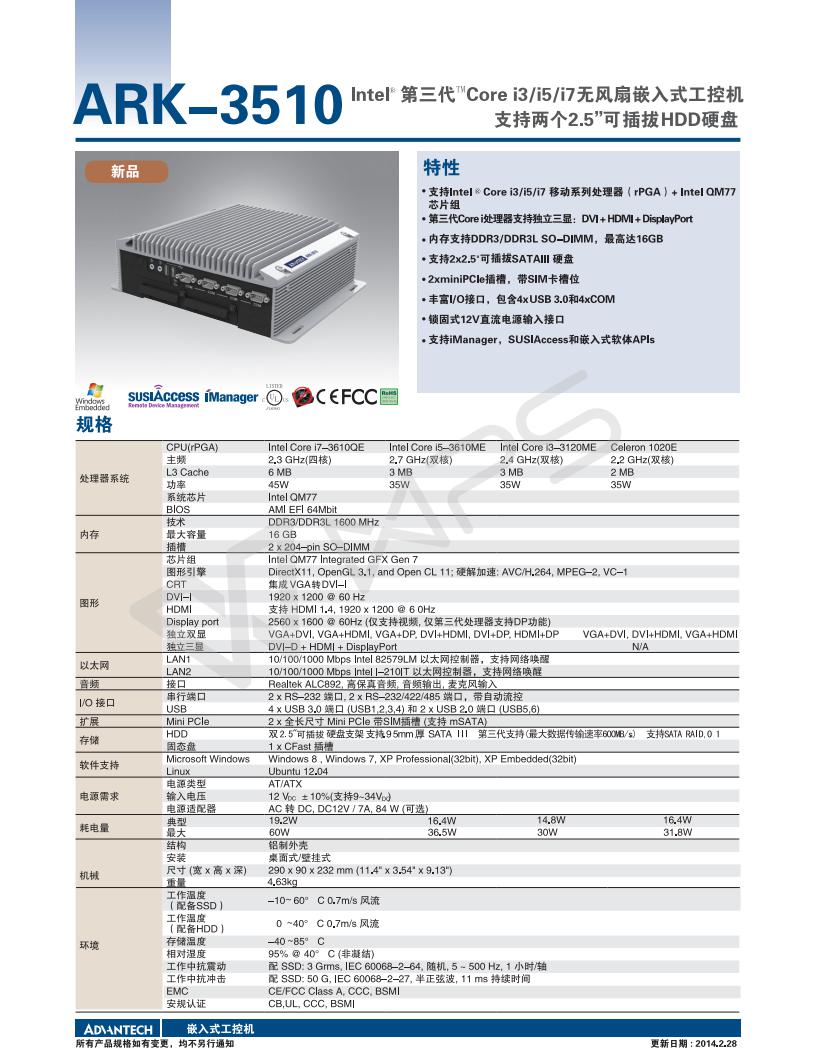 無風(fēng)扇嵌入式工控機(jī)ARK-3510